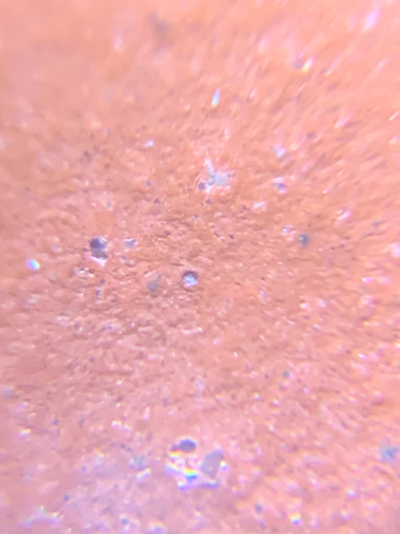 This is a magnified photo of the excellent quality Yixing zisha zhu ni from yxing city, ding shu town, used in this teapot. The mineral crystals are visible.